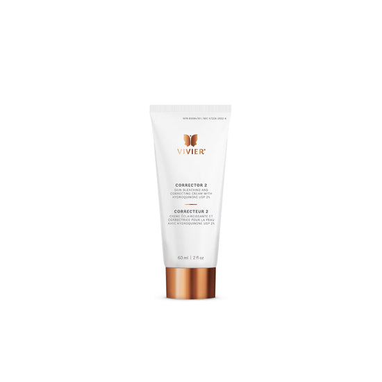 - Nettoyez et tonifiez votre visage et appliquez vos sérum léger avant de l'utiliser. Appliquez une couche mince de Correcteur 2 sur les zones affectées. Complétez votre routine avec un rétinol, ou autres produit cibles et une crème hydratante si désirez. Utiliser le matin et le soir, ou selon l'avis d'un médecin.. Il est important de limiter l'exposition au soleil et de toujours porter un écran solaire d'un FPS 30+ lorsque vous utilisez l'hydroquinone. DÉTAILS L'hydroquinone est un ingrédient très efficace qui éclaircit et corrige les taches foncées modérées à sévères. Il n'est pas recommandé de dépasser 3 mois consécutifs d'utilisation. Pour de meilleurs résultats, utilisez le Correcteur 2 pendant 3 mois, puis passez à notre Crème éclaircissant de le peau, non HQ.